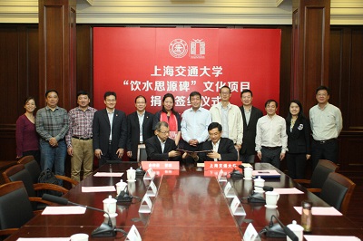 俞偉景、晉琰夫婦在簽約儀式前與交大校黨委書記姜斯憲會面,姜斯憲對他們秉持“飲水思源,愛國榮!本瘢谑聵I有所成就以后回饋母校的感恩情懷表示贊賞和感謝。雙方以學長相稱,共同回憶了在上世紀八十年代初期交大求學期間的往事,以及執信西齋(第一宿舍)前的“飲水思源碑”在每一位交大人心底的特殊意義,它見證了一代代交大人拼搏奮斗的歷史,也和交大一起經歷風雨、共筑輝煌,是屹立于交大人的心靈深處的豐碑,是交大人的精神之源。